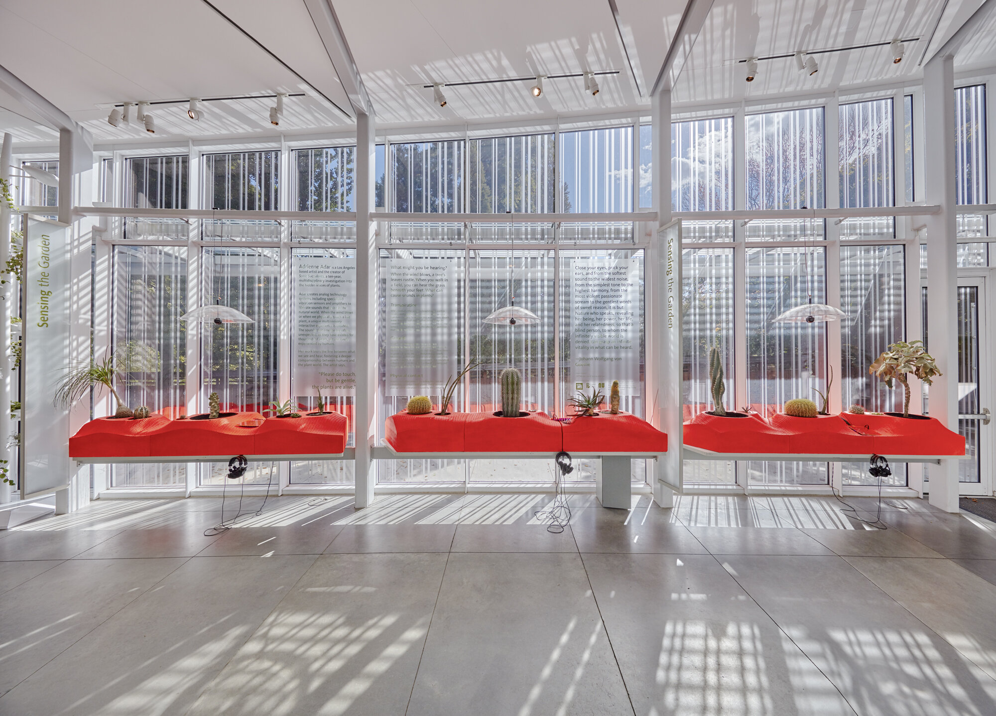 She creates interactive work, often incorporating living plants and technology in site-specific installations in addition to photographic and sculptural pieces.